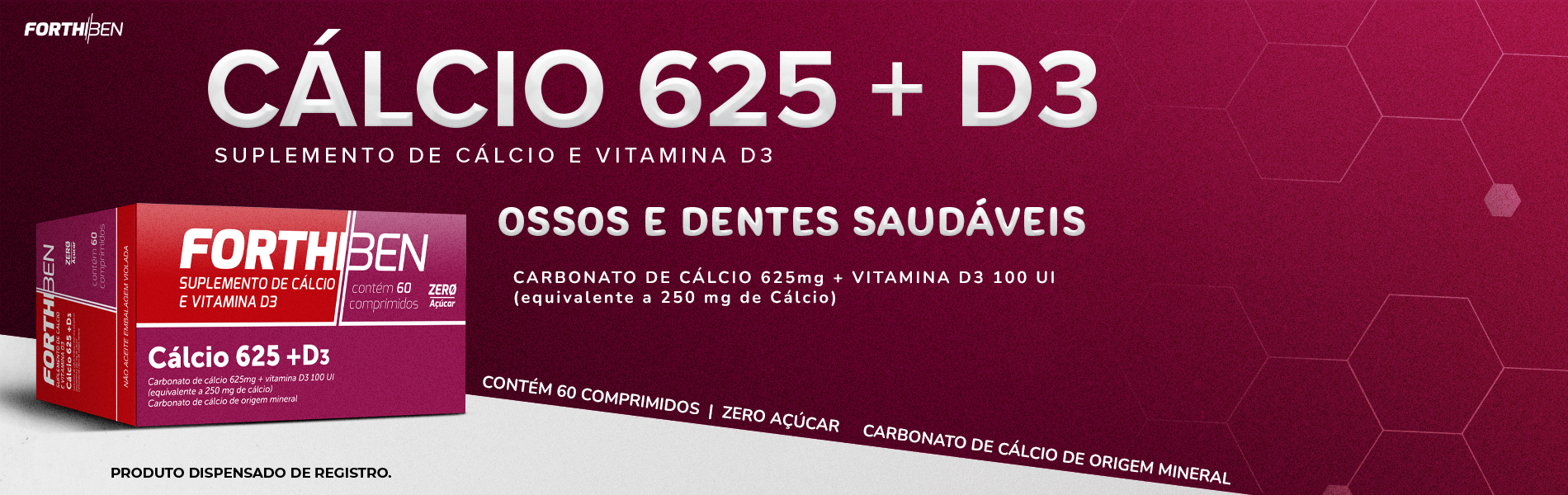Cálcio 625 + D3 é um suplemento alimentar de cálcio e vitamina D3 em comprimidos.